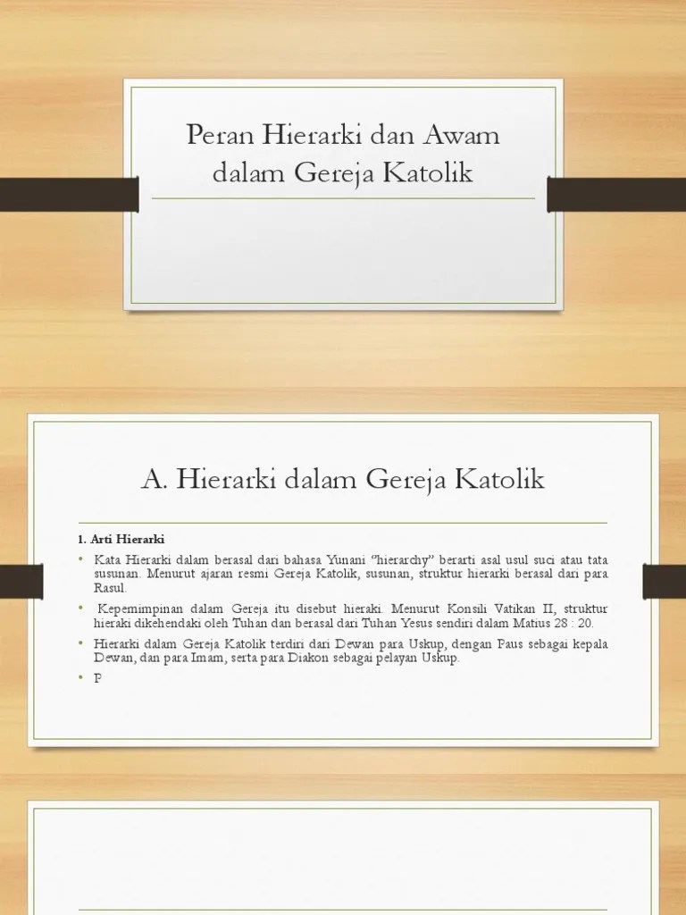 Hubungan awam dan hierarki sebagai partner kerja. Struktur hierarki gereje katolik · 1. Kardinal, sumber wikipedia on amazon.com.au. Apa makna hierarki gereja katolik, dan unsur apa saja yang ada dalam hirarki tersebut? Gereja sebagai persekutuan yang terbuka.